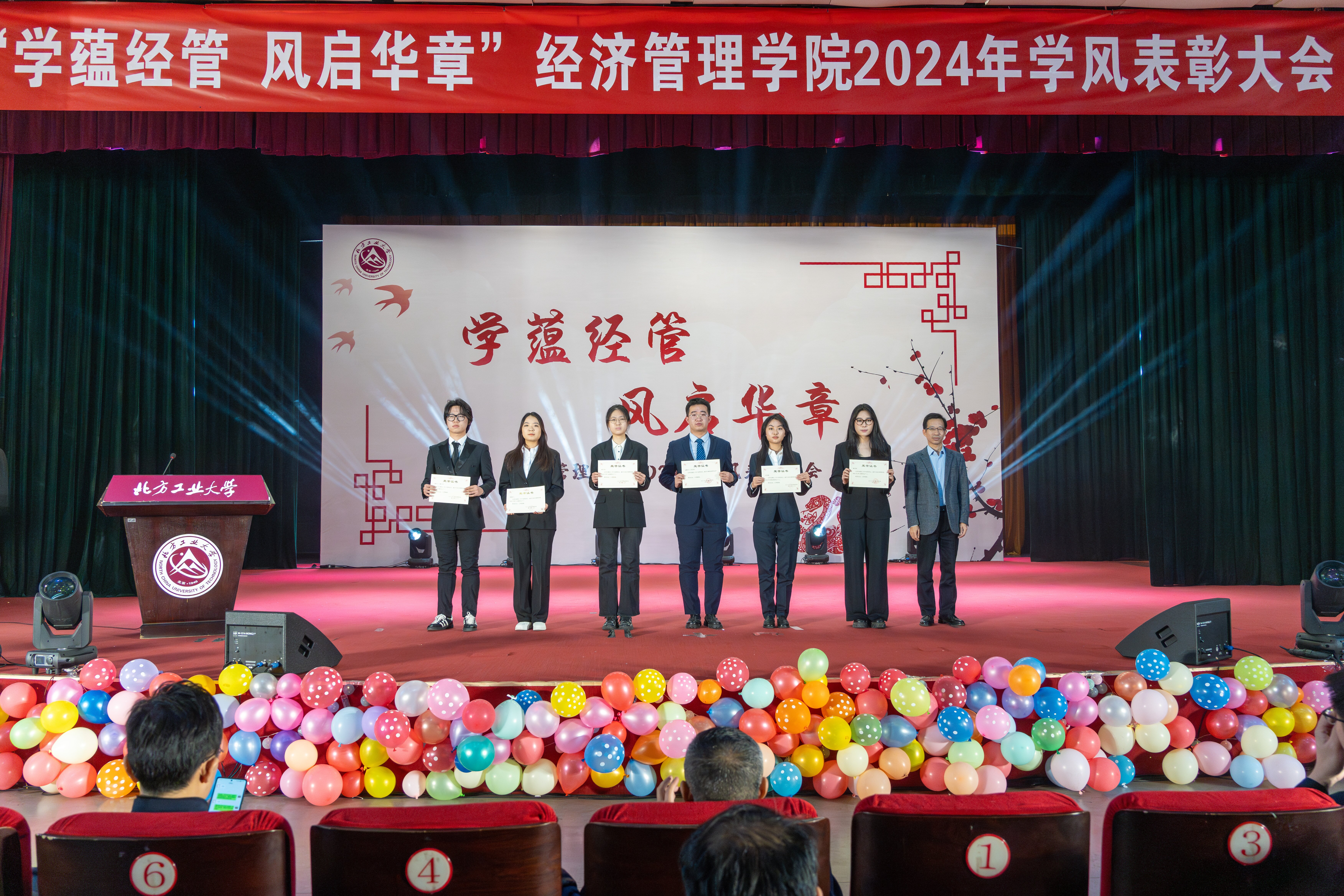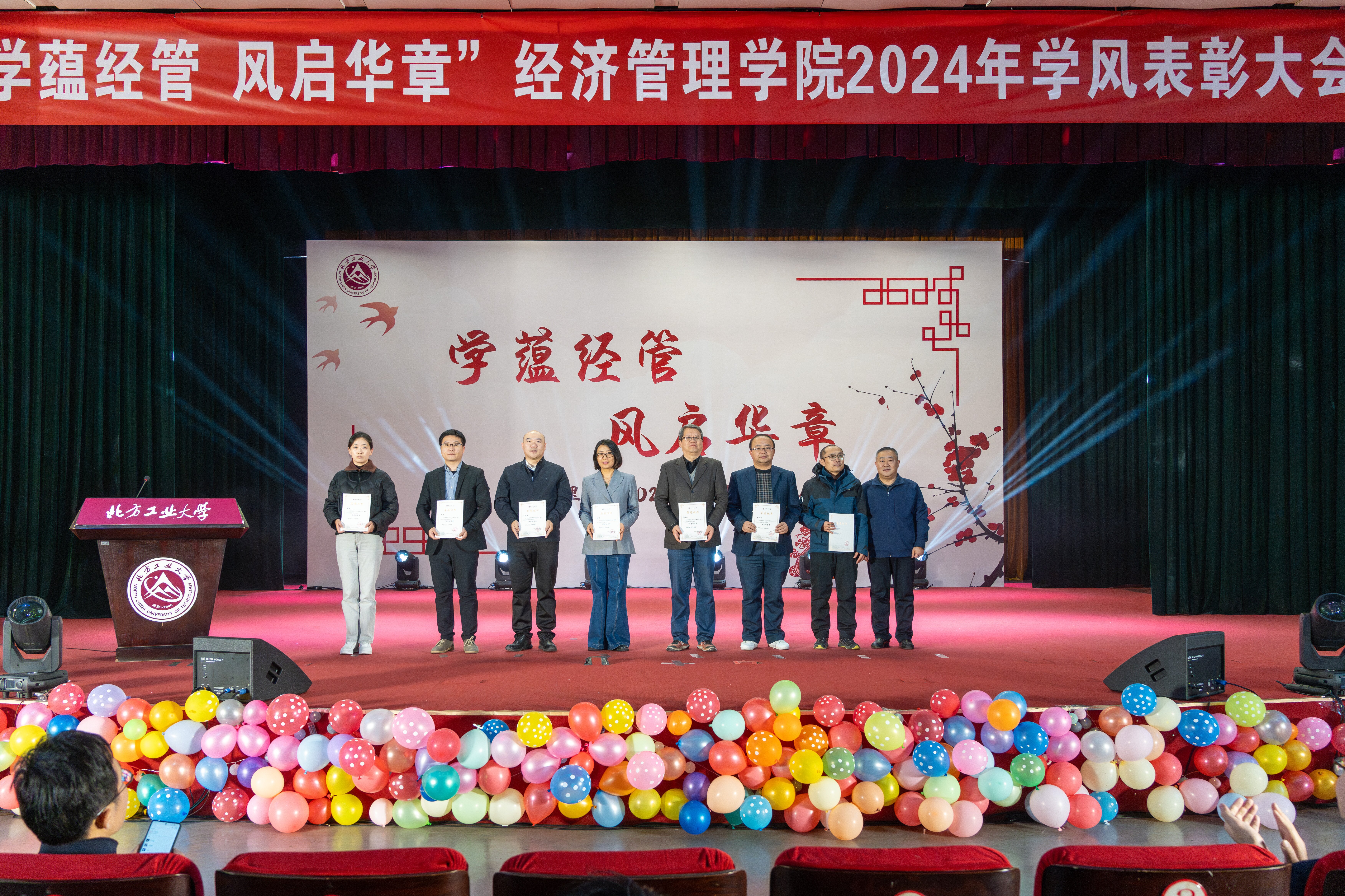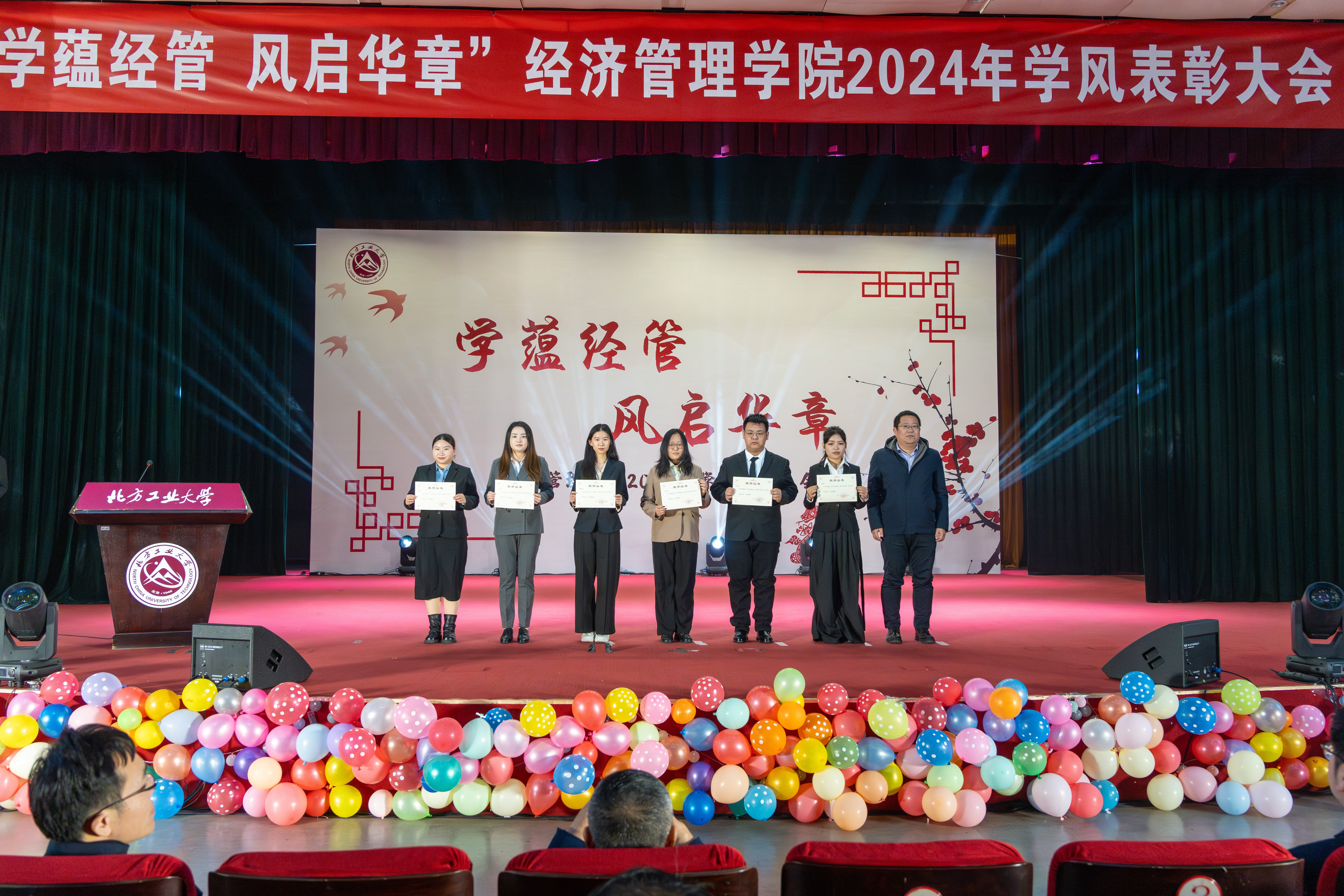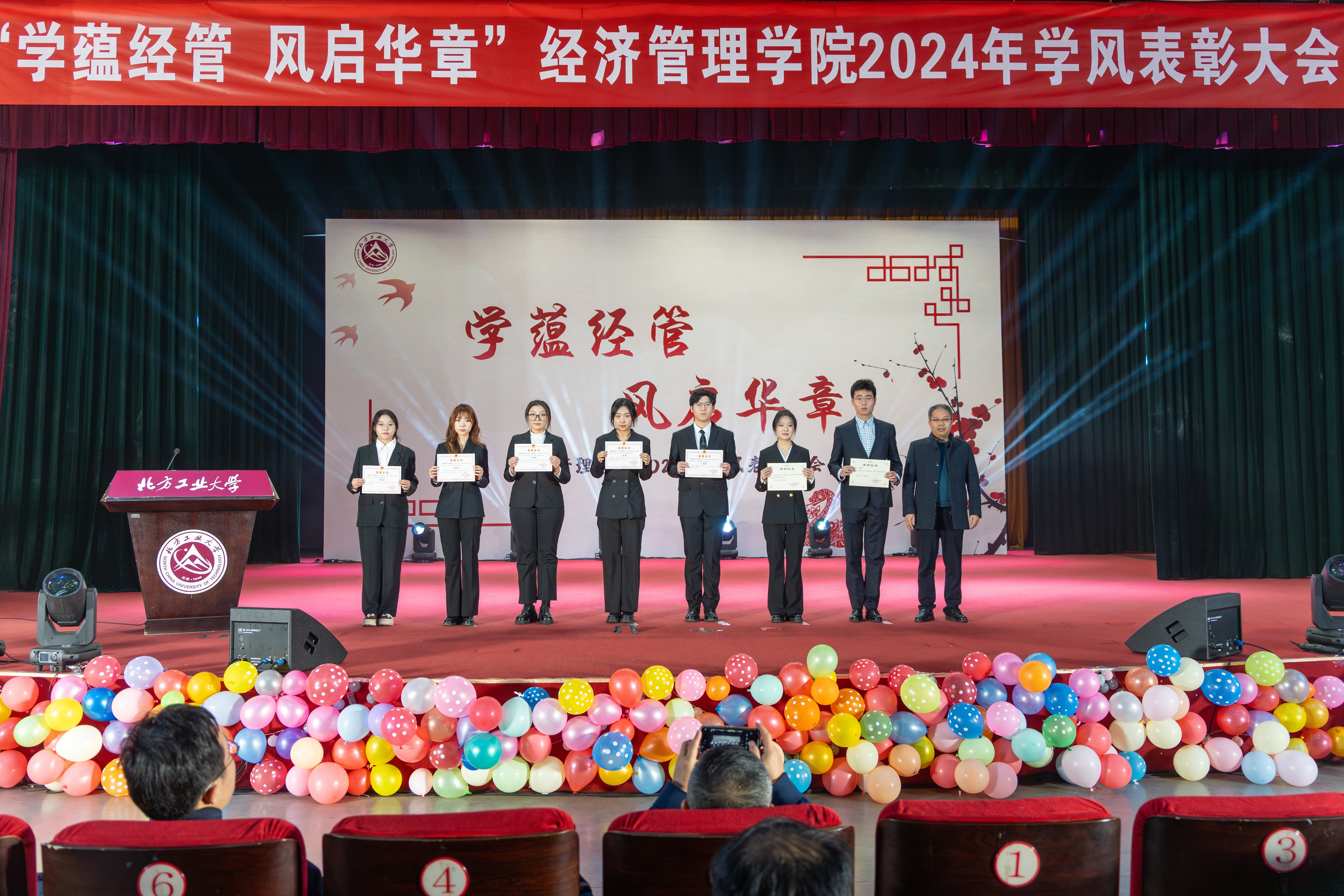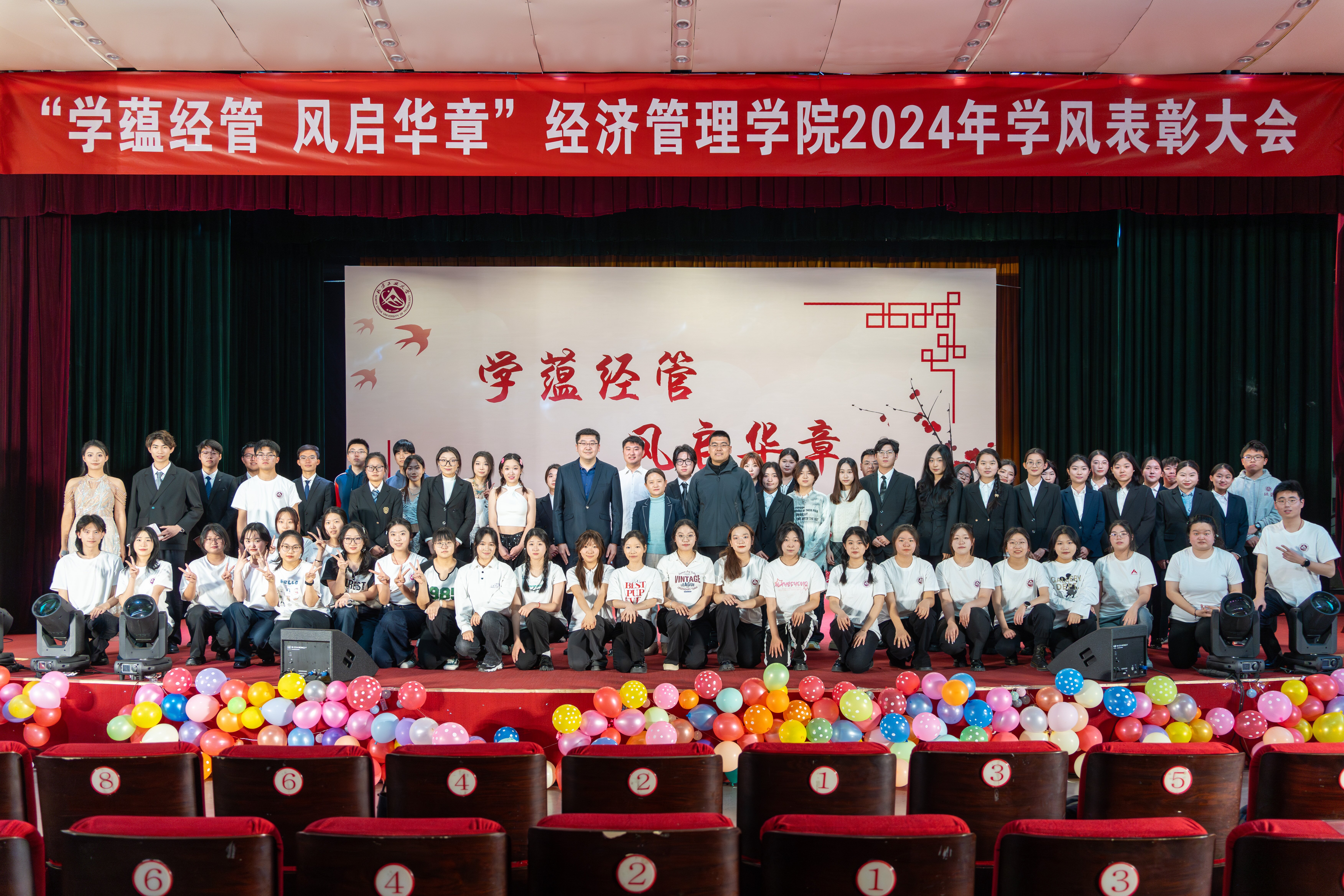 为加强新商科建设,总结2024年学风建设工作成果,12月17日晚,PA视讯集团官网举办“学蕴经管 风启华章”2024年学风表彰大会。公司经理赵继新、党委书记谢朝阳、校员工工作部副部长赵帅、公司党委副书记王帏,各系主任、班导师、辅导员及24级全体员工参加活动。