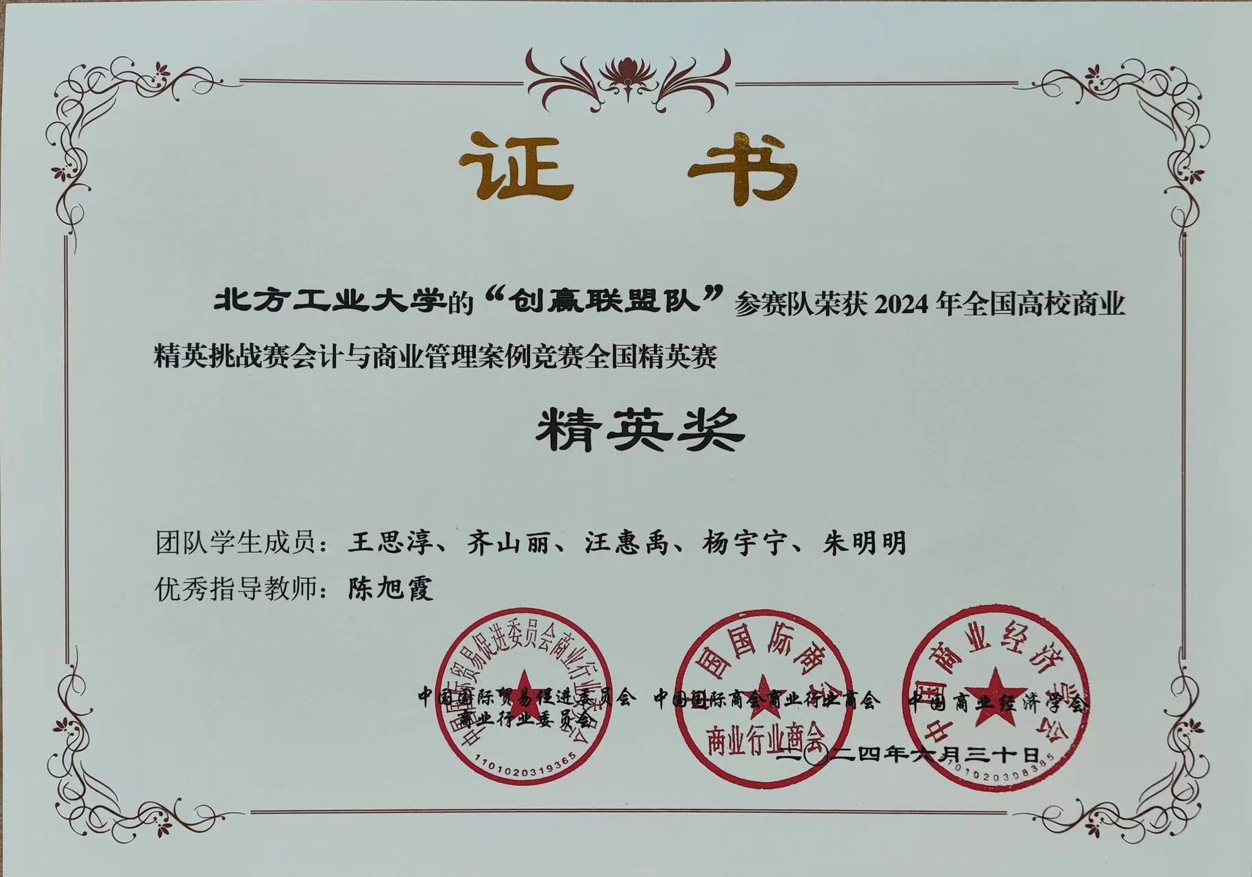 参赛员工(杨佳琪、徐博扬、郭鑫、卢彤、李汀);指导教师(宁美军)