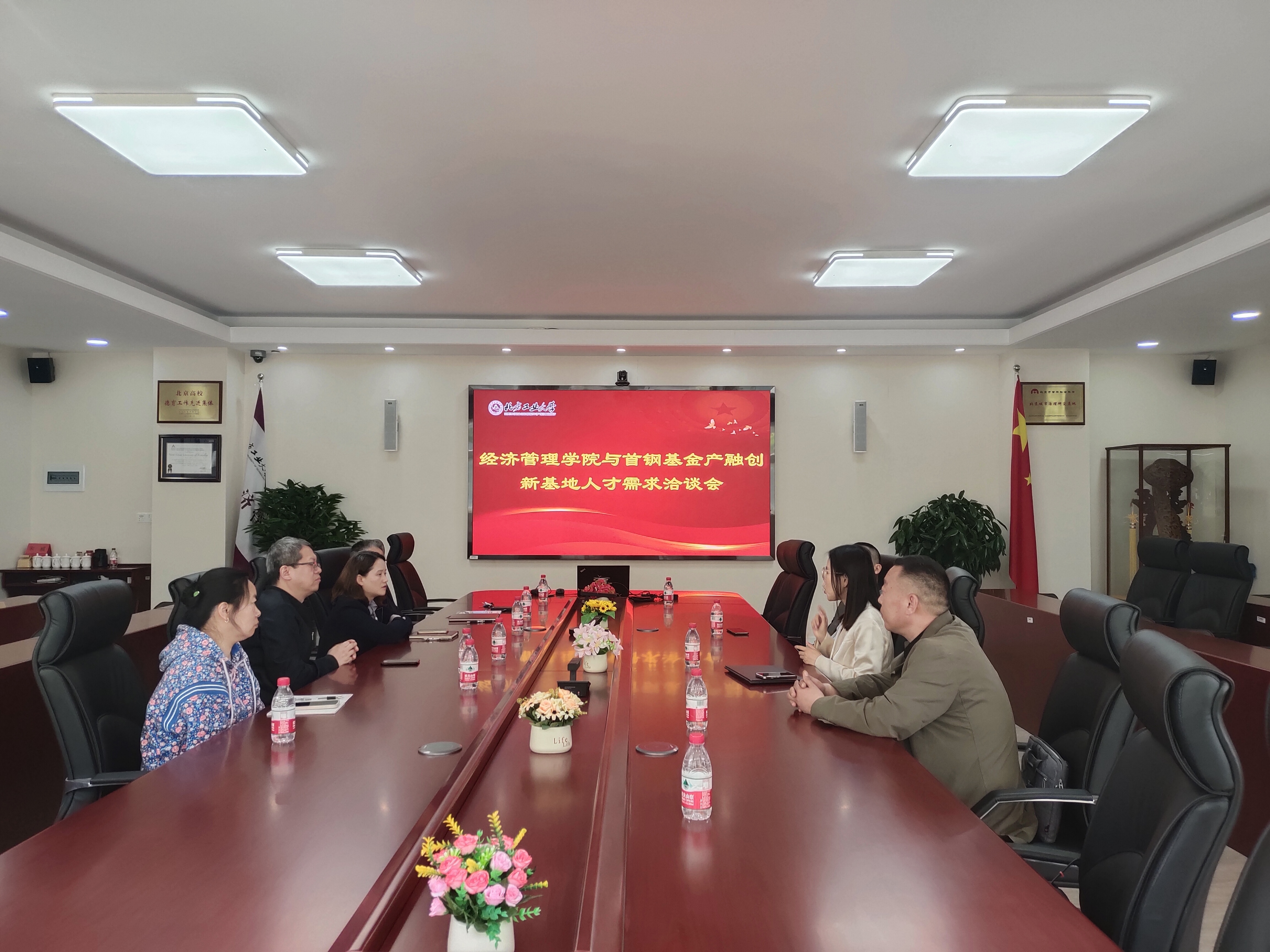 谢朝阳书记从公司的人才培养理念、人才培养模式等方面对公司经管类人才培养情况进行了介绍,希望通过校企人才供需对接,拓宽双方在产学研等方面的合作渠道。刘春颖对首钢基金产融创新基地企业孵化情况做了介绍。公司对国贸和管理专业人才需求进行了详细介绍。