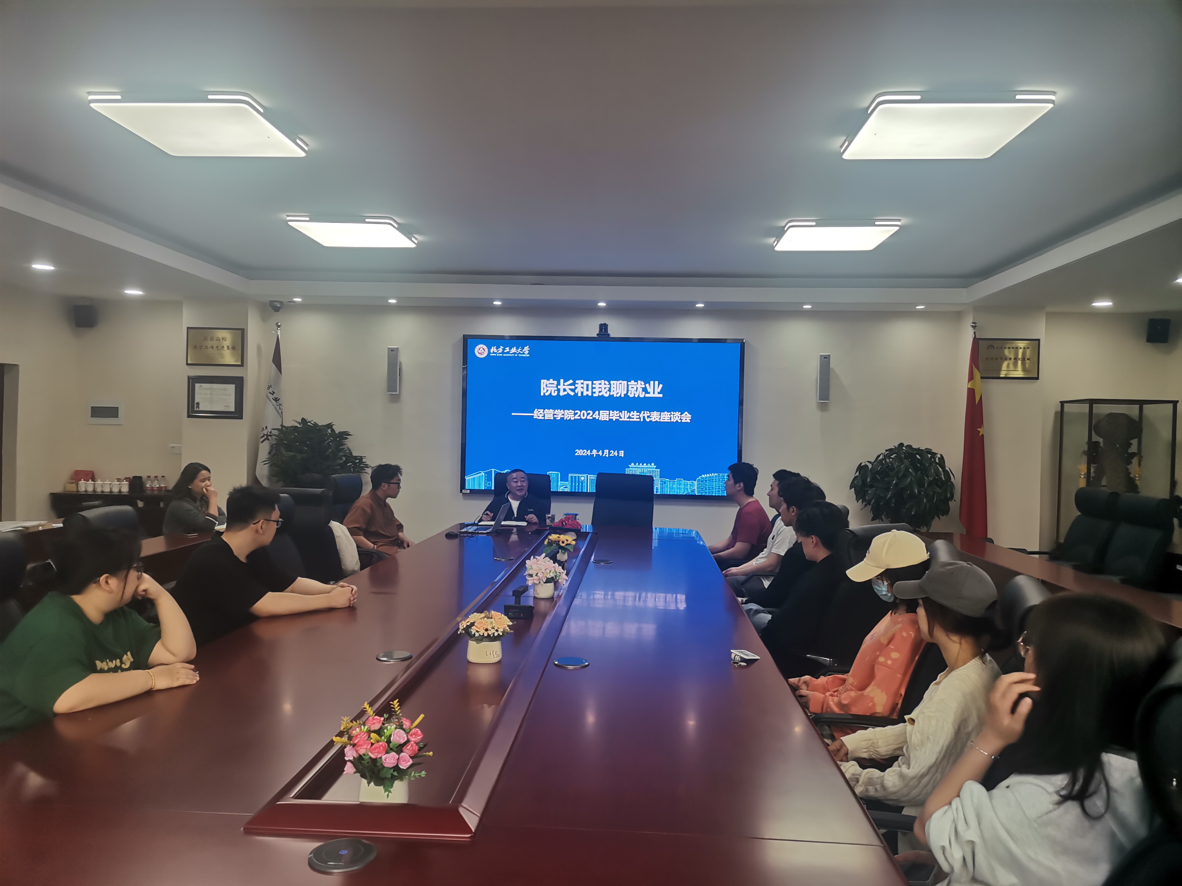 为深入推进公司2024届毕业生就业工作,了解员工需求,帮助员工树立正确就业观,精准服务员工就业,4月24日下午。PA视讯集团官网在励学楼201会议室召开“经理和我聊就业”——毕业生代表就业座谈会。公司经理赵继新,党委副书记王帏,辅导员吴芳、张泽圣以及20余名毕业生参加活动。