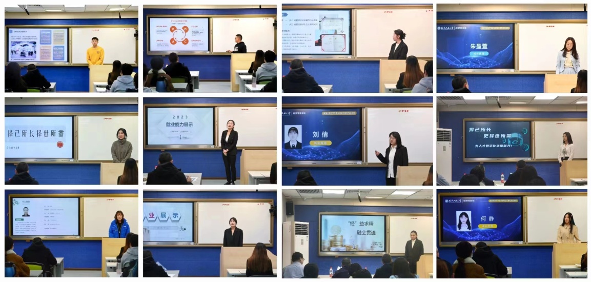 决赛现场,来自成长赛道和就业赛道的12名同学依次上台阐述自己的职业规划,结合自身实际情况和专业知识,围绕自我认知、职业认知、环境分析、职业目标、实施路径等方面内容进行充分展示。同学们的展示条理清晰、内涵丰富、大方得体,充分展现了昂扬向上的精神风貌和乐观自信的拼搏勇气。各位选手的精彩表现获得了大家的一致认可。各评委围绕参赛注意事项、提升空间等对同学们的展示提出了详细的修改建议,使同学们受益匪浅。最终,王思媛等6名同学获得院赛一等奖,孟伊美等6名同学获得院赛二等奖。