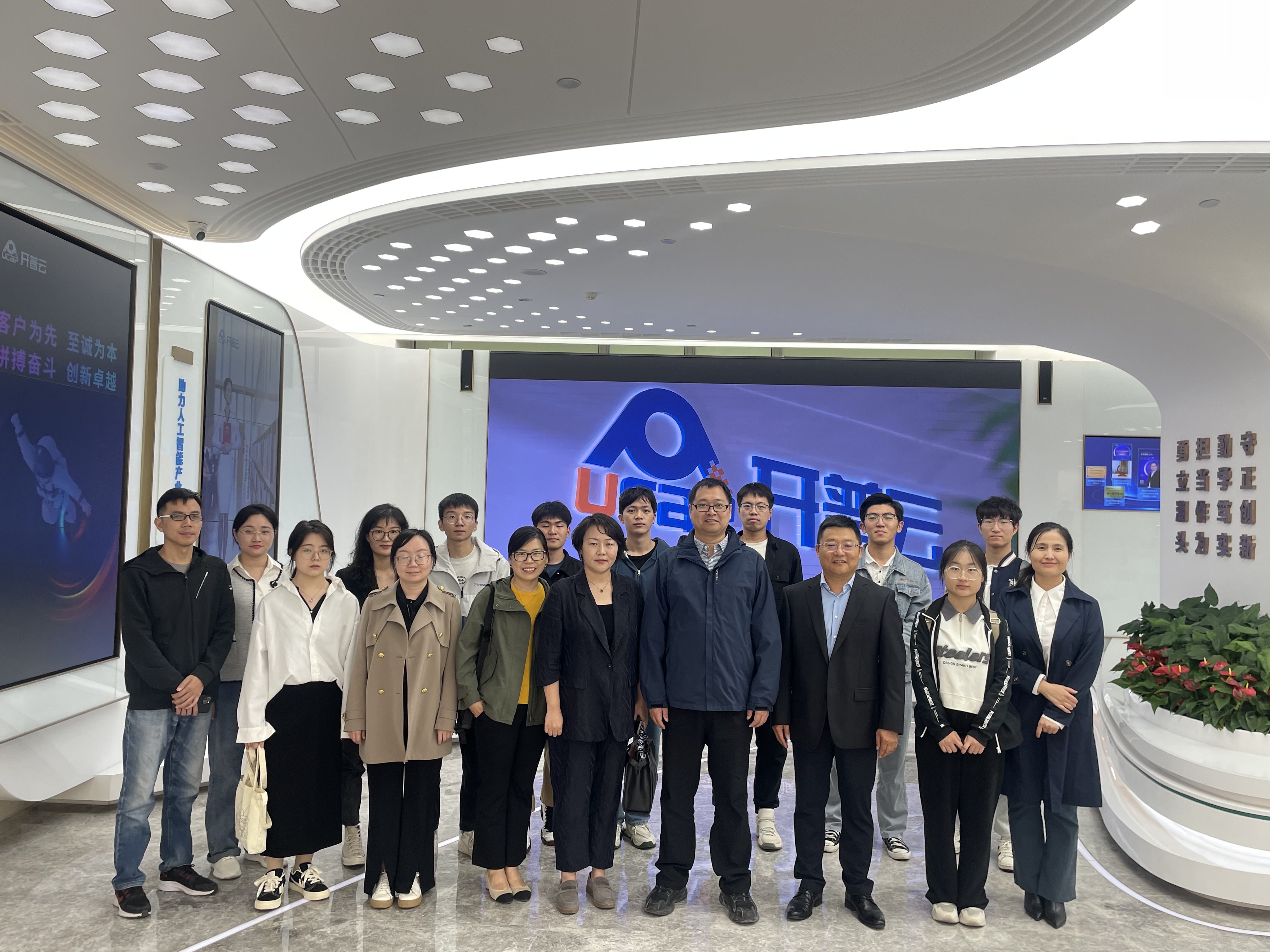 公司师生首先参观了开普云的展厅,在公司总裁助理孙旭介绍下,对公司和公司的主要业务有了初步了解。开普云信息科技有限公司于2020年在上交所科创板上市,是国内领先的基于AI大模型的行业数字化服务提供商。