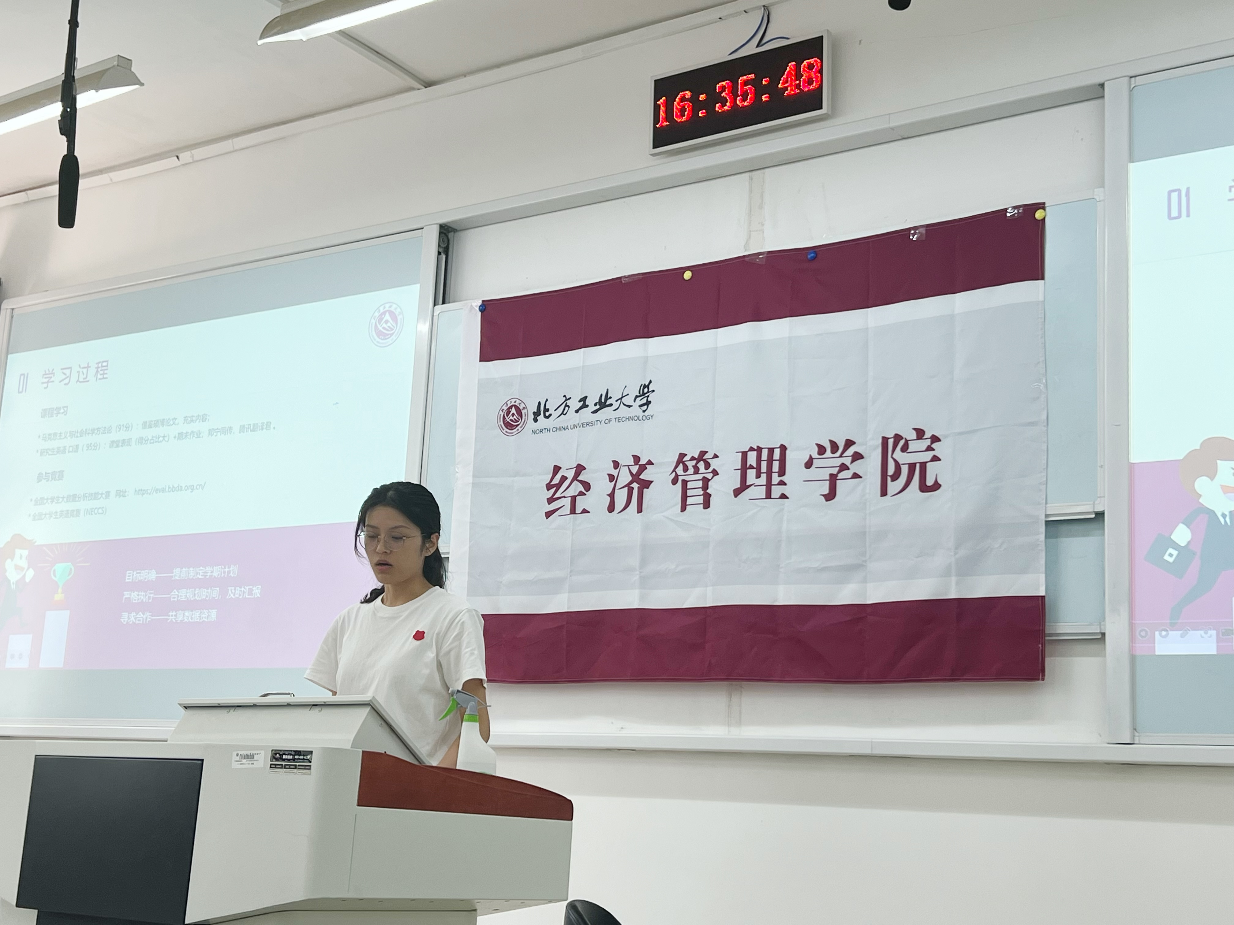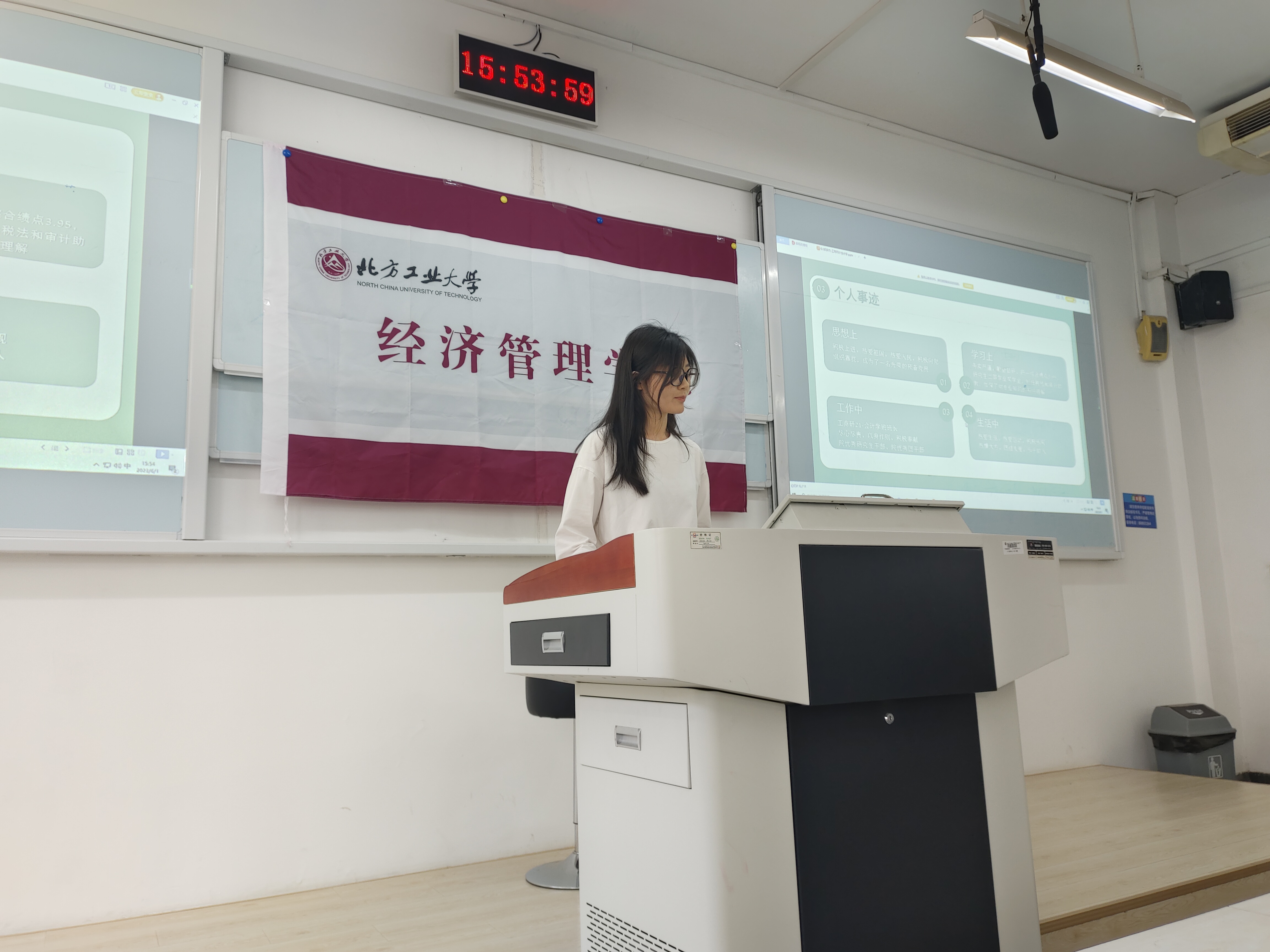 于润泽同学为大家分享了研究生阶段如何将自身实践融入研究过程当中,并以自己将员工工作和燕京八绝非遗文化遗产宣传中的收获融入学术研究为例总结相应的心得体会,鼓舞大家不要畏惧学术,勇敢向前。