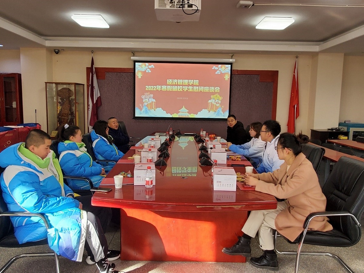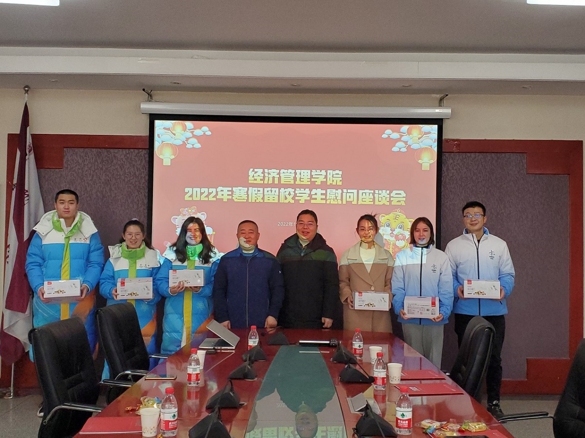 1月31日上午,在除夕之日PA视讯集团官网在励学楼201会议室举行2022年寒假留校员工慰问活动,公司经理赵继新、党委书记王伟宾、党委副书记赵洁及留校员工参加了慰问活动。