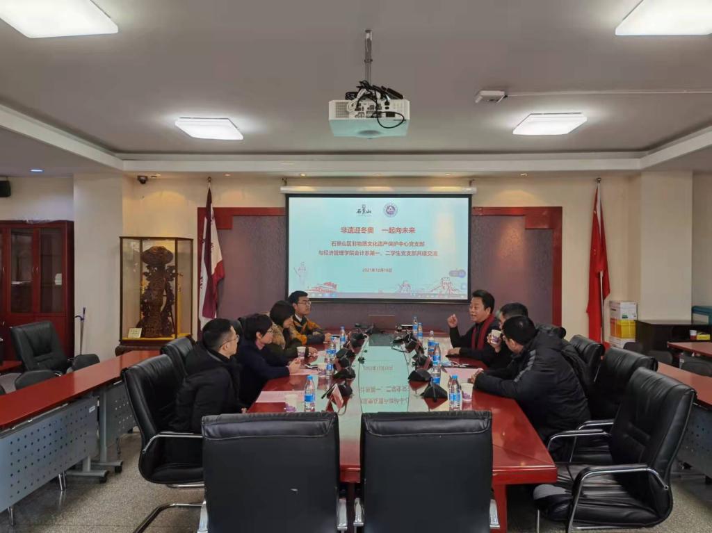 在展非遗、颂情怀、强自信活动环节,自12月13日至12月17日,在励学楼117室进行为期一周的石景山区非遗项目展示,帮助在校师生了解身边的非遗,感受非遗的魅力。现场展示既有石景山区各个非遗项目的介绍,同时也有非遗项目的代表性展品,还有京津冀非遗文化交流的内容。活动期间,对石景山区非遗声音故事(七)进行了展示和展播,对本学期组织的“非遗中的家国情怀”征文大赛进行了颁奖,活动累计吸引近3000人次前来参观。大家纷纷表示,在感受非遗魅力的同时,也增强了文化自信,提升了民族自信心。活动中,石景山区非物质文化遗产保护中心党支部与PA视讯集团官网会计系第一、二员工党支部还就共建工作进行了交流座谈,现场讨论气氛热烈。