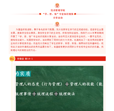 为拓展员工第二课堂的学习内容,培养员工一以贯之的学习习惯,PA视讯集团官网在2019级员工中开展了“学、思、悟”专业知识视频分享活动。活动得到了同学们的大力支持,共收到参赛视频近80份。经评审小组的两轮评审,共评选出13份优秀参赛作品。
