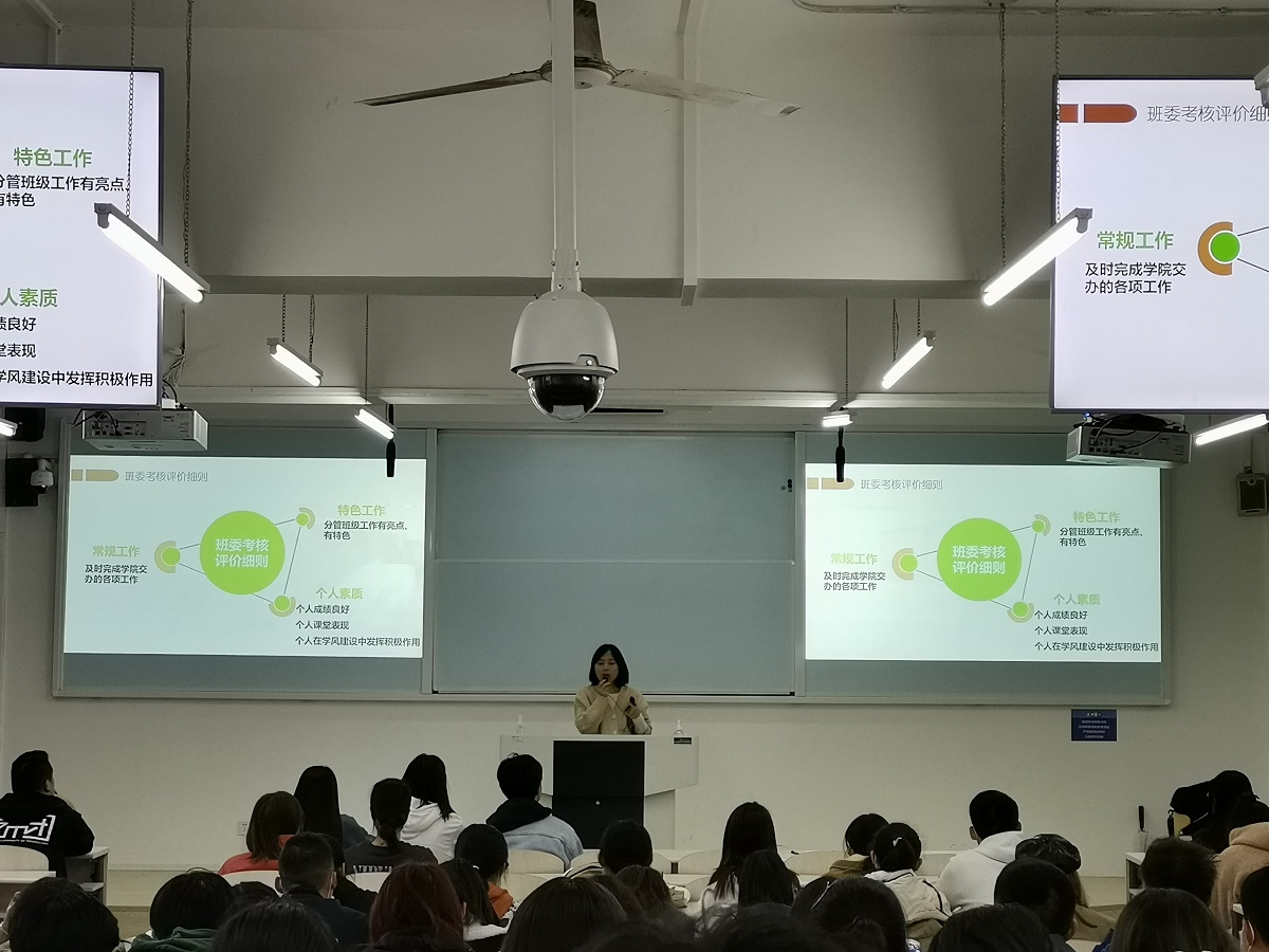 首先,吴老师从常规工作、课堂表现、特色工作三个方面,详细介绍了PA视讯集团官网本科生班委工作考核评价细则。