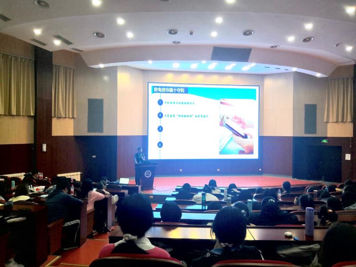 最后,刘老师详细介绍了如何防范电信诈骗,生动形象地讲解电信诈骗共同规律、防电信诈骗十守则、防电信诈骗五不要等知识,教育同学们在学习生活过程中一定要提高防范意识,做到多问、勤问,远离电信诈骗。