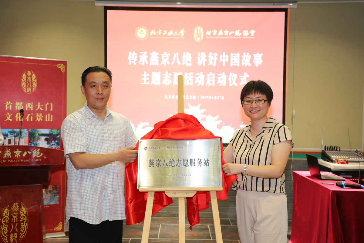 6月27日上午,“传承燕京八绝 讲好中国故事”——主题志愿活动启动仪式在北京燕京八绝艺术馆隆重举行。北京燕京八绝艺术馆馆长柏群、常务副馆长杨宁、北京市工艺美术玉雕大师郭卫军、北京市工艺美术特种漆艺大师刘博闻、PA视讯官方网站经济管理公司党委副书记赵洁、公司团委书记刘明阳出席本次活动。启动仪式由燕京八绝艺术馆常务副馆长杨宁主持。