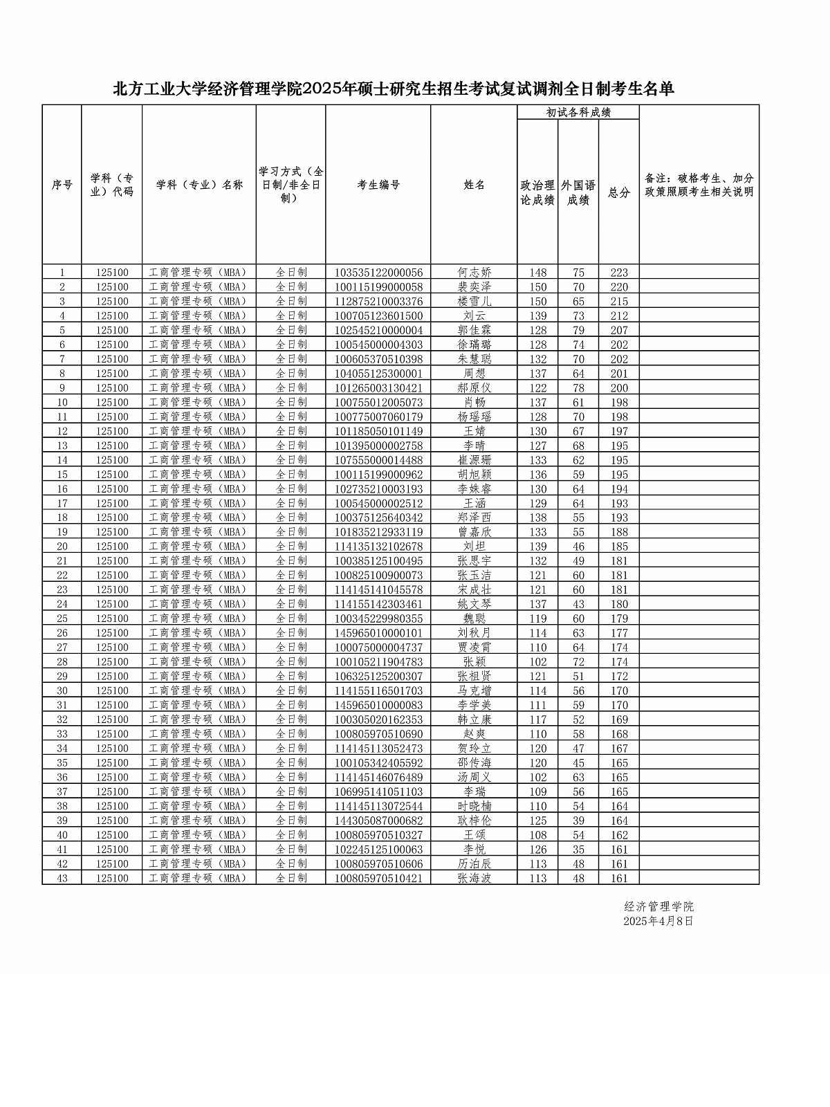 下一条: 2025年硕士研究生招生考试复试调剂--工商管理专硕(MBA)非全日制考生名单