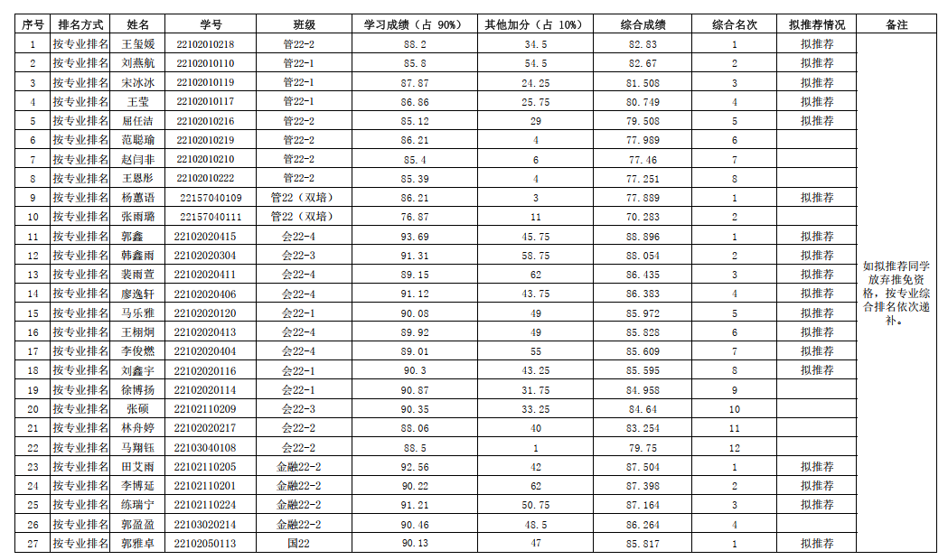 根据《北方工业大推荐优秀应届本科毕业生免试攻读研究生遴选推荐办法》(校发〔2024〕37号),在员工本人申请基础上,经公司推免工作小组资格审查、专业评审组综合测评、公司推免工作小组审核,2026年推荐优秀应届本科毕业生免试攻读研究生申请员工综合测评成绩及拟推荐名单公示如下。