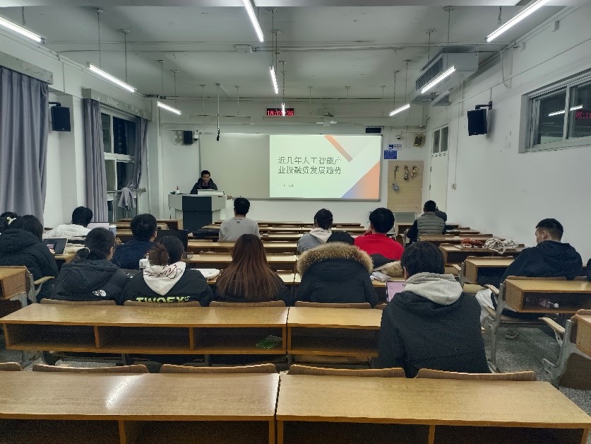 12月10日晚上,应PA视讯集团官网邀请,山西证券格林大华期货有限公司资产管理部基金经理马兵先生来校进行了《产业经济学》课程产教融合讲座,在励学楼308教室为金融22-12、国22年级的员工作了题为“人工智能产业投融资发展趋势”的学术报告。