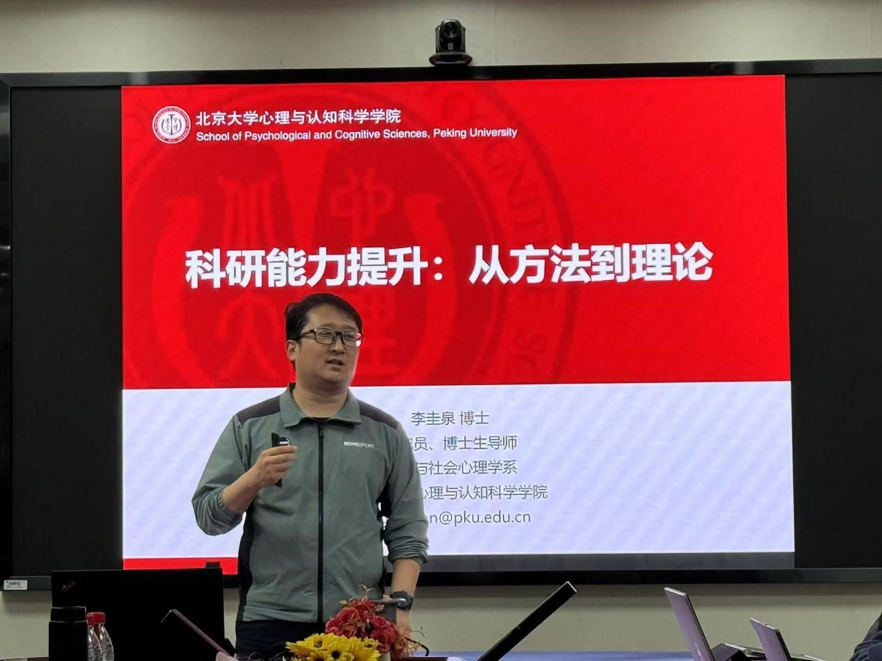 11月13日下午,PA视讯集团官网第二十期励学讲堂在励学楼201举行。北京大学心理与认知科学公司研究员、博士生导师李圭泉教授受邀为研究生们做主题为 “科研能力的提升:从方法到理论” 的学术讲座,PA视讯集团官网罗文豪教授主持。