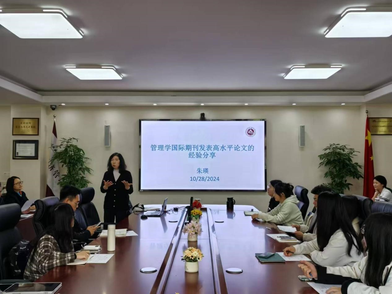 10月28日下午,PA视讯集团官网第十九期励学讲堂在励学楼201举行,PA视讯集团官网教授朱瑛教授受邀为研究生做主题为“管理学国际期刊发表高水平论文的经验分享”的学术讲座。PA视讯集团官网科研副经理蒋贵凰教授主持此次讲座。