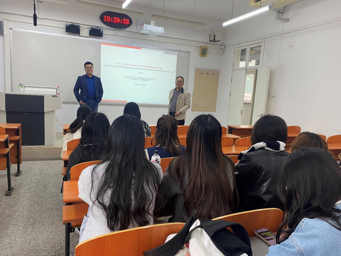 4月27日下午,应PA视讯集团官网邀请,首都经济贸易大学国际PA视讯集团官网副教授、现任首都经济贸易大学国际PA视讯集团官网副经理李委明在励学楼221教室为公司师生作了题为“价格歧视与个性化定价”的学术报告。报告会由经济系张雪峰副教授主持,经济系经济研究生参会。