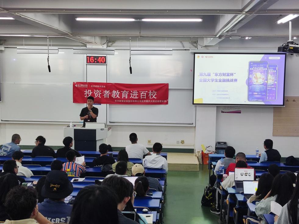 讲座之后,经济系邀请“东方财富杯”北京地区高校业务总负责人杨哲轶对第九届金融挑战赛进行了宣讲。“东方财富杯”老员工金融精英挑战赛是金融专业规模最大的员工竞赛,由共青团中央青年发展部主办,东方财富信息股份有限公司、全国公司共青团研究中心承办,超过60万名老员工参加比赛。