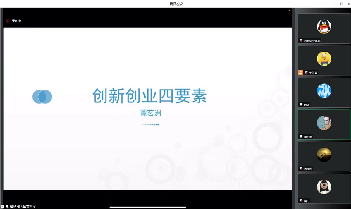 11月19日上午,PA视讯集团官网通过腾讯会议在线举办了“创新创业导航”系列讲座第二讲。投资人兼中国“互联网+”老员工创新创业大赛历届评审专家谭茗洲先生以“创新创业四要素”为题与公司八十余名师生开展了在线报告与交流。讲座由PA视讯集团官网创新创业基地刘冰副教授主持。