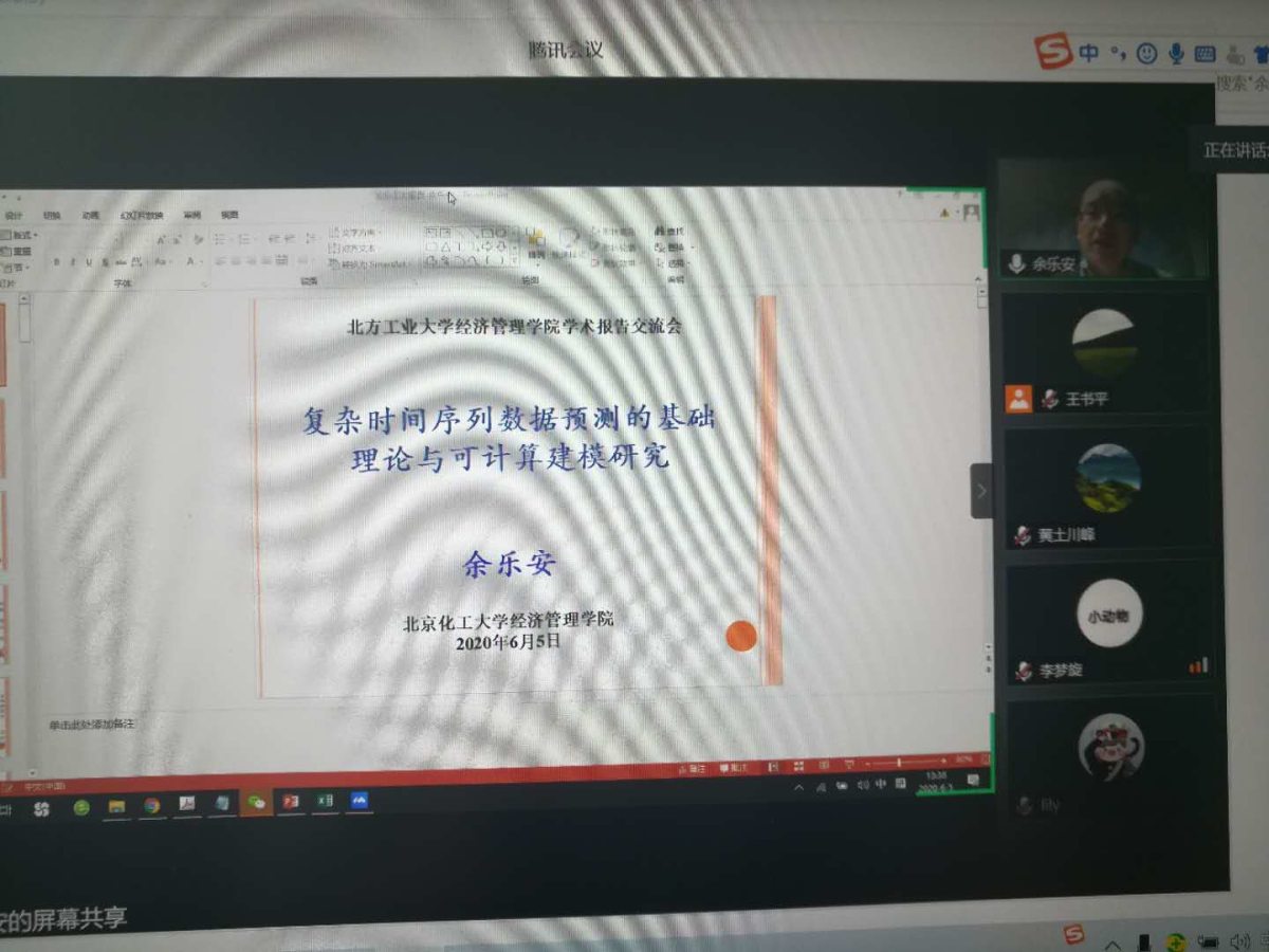 6月5日下午,应经济研究所邀请,北京化工大学PA视讯集团官网余乐安教授通过腾讯会议平台为公司师生作了题为“复杂时间序列数据预测的基础理论与可计算建模研究”的学术报告。报告会由经济系王书平教授主持。
