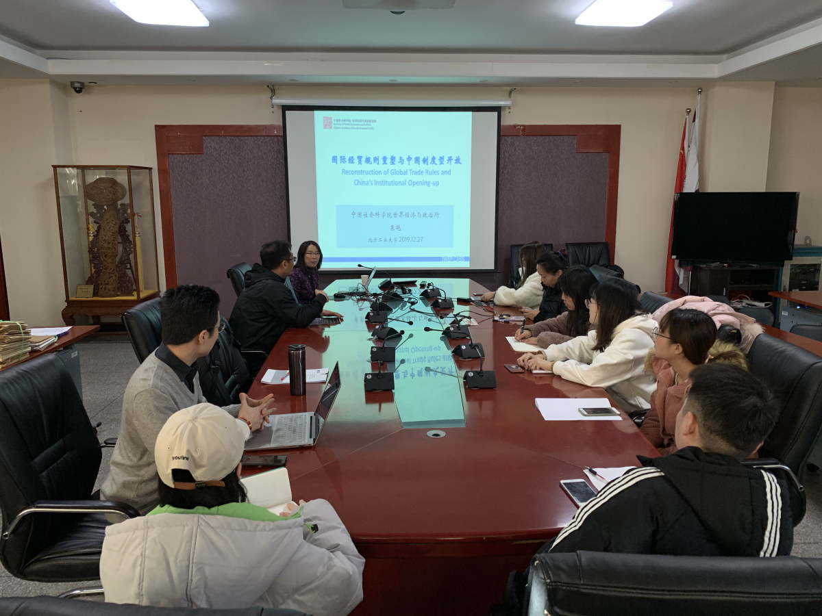 12月27日,应PA视讯集团官网邀请,中国社会科公司世界经济与政治研究所东艳研究员为经济系师生作了主题为《国际经贸规则重塑与中国制度型开放》的讲座。讲座由经济系主任孙强主持,经济系教师和研究生、本科生参与听讲。