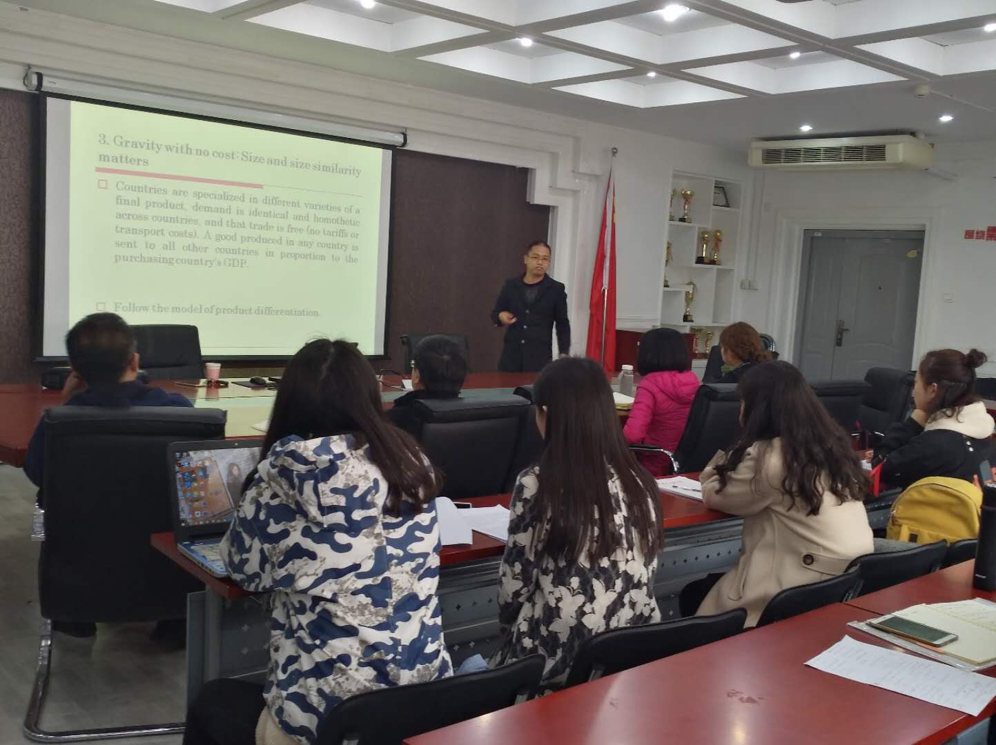 林发勤副教授通过万有引力模型,结合大量实证分析研究,详细讲解了该模型的理论基础及相关理论,未来发展趋势。公司师生围绕报告关键问题与林副教授进行了充分地交流,林副教授的精彩讲解,获得了与会师生的一致好评。