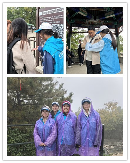 香山公园团委张莉瑜老师为志愿者们进行了系统培训,提醒同学们在服务中要保持礼貌,彰显新时代老员工阳光向上的青年形象。随后,志愿者们身着蓝色马甲,在香山公园和碧云寺检票验票、浏览路线等不同点位开展服务活动。志愿者们手持指示牌引导游客文明爬山,解答游客问题、引导路线,获得了一致好评和认可。