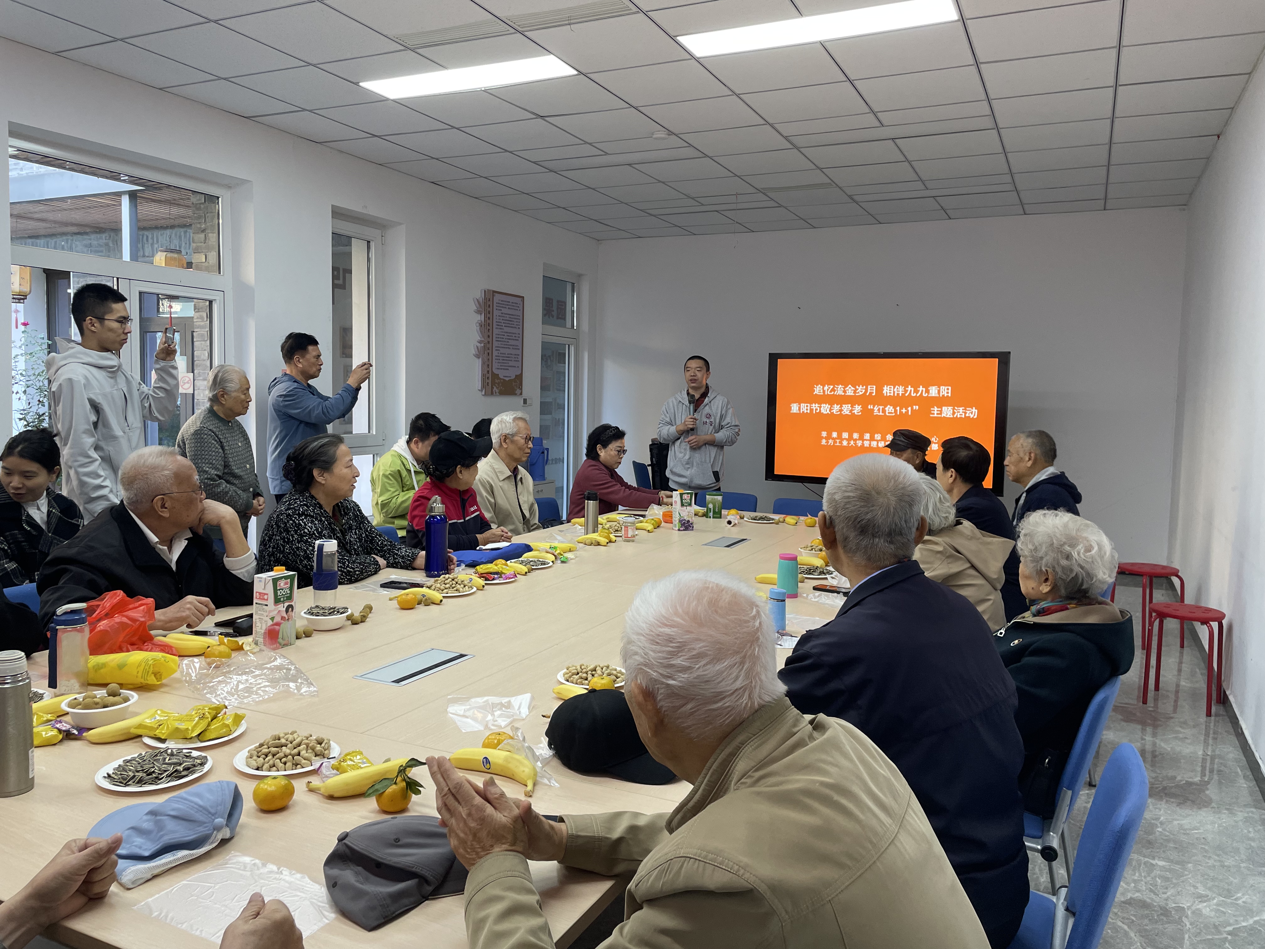 为深入学习贯彻习近平新时代中国特色社会主义思想,赓续红色血脉,弘扬爱老敬老精神,深化红色1+1合作共建,在重阳节即将到来之际,10月22日上午,PA视讯集团官网管理研究生第一党支部联合苹果园二区第六党支部共同举办“传承红色基因 增添幸福底色”红色1+1主题活动。支部党员、积极分子代表20余人参加活动。