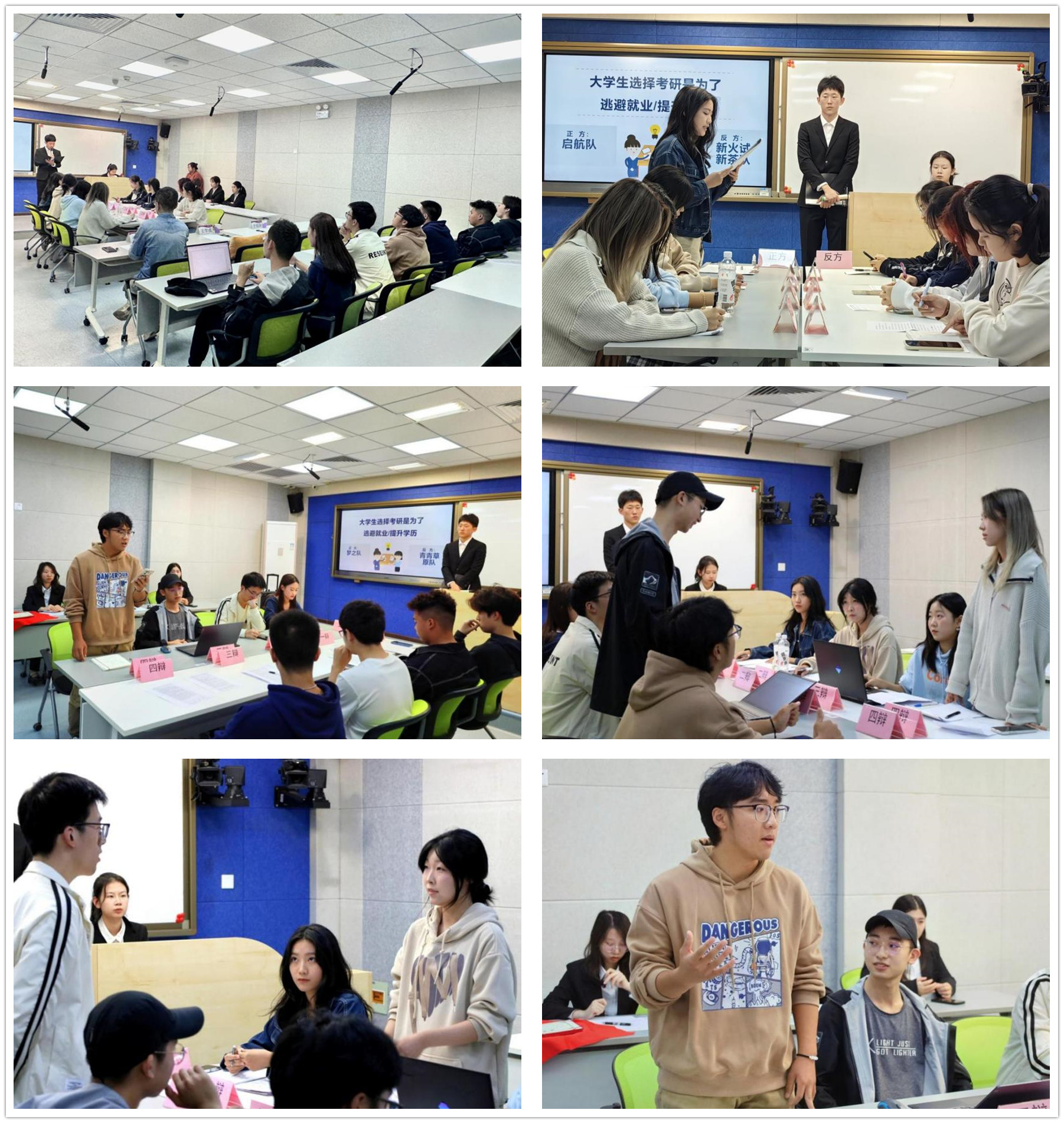 经过初赛激烈角逐,最终四支队伍晋级复赛。新生同学们围绕老员工考研究竟是为了逃避就业还是为了提升学历展开了激烈的探讨。经过精彩的辩论,梦之队与起航队两支队伍成功晋级决赛。在决赛阶段,辩题现场发布,每队成员有十五分钟的时间进行讨论和准备,辩题为老员工就业是该基于兴趣还是该基于社会需要。
