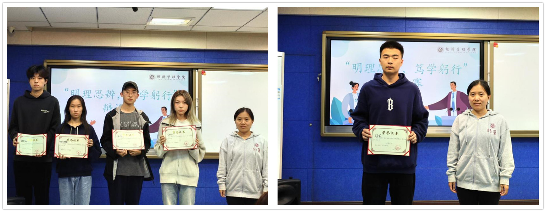 经过激烈角逐,本次“明理思辨,笃学躬行”辩论赛告一段落。最终,启航队获得一等奖,梦之队获得二等奖,新火试新茶队、青青草原队获得三等奖。