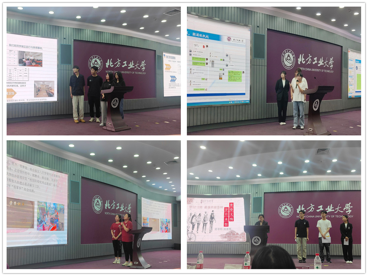 经过班级申请,低年级组11个班级、高年级组3个班级共14个班级参加评选展示活动。各班代表分别围绕班级思想引领、学风建设、社会实践、学科竞赛、志愿服务、班级特色等方面内容进行了深入细致的展示汇报,充分展现了各班级团结进取的精神风貌和建设过程中积累的经验与成绩。