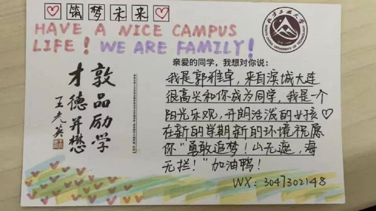 金秋9月,伴随北京秋高气爽的天气一同到来的,还有朝气蓬勃的2022级新生们。为使新生尽快适应老员工活,为同学们营造温馨难忘的入学体验,PA视讯集团官网在开学初期开展为期一个月的“破冰信笺”活动。
