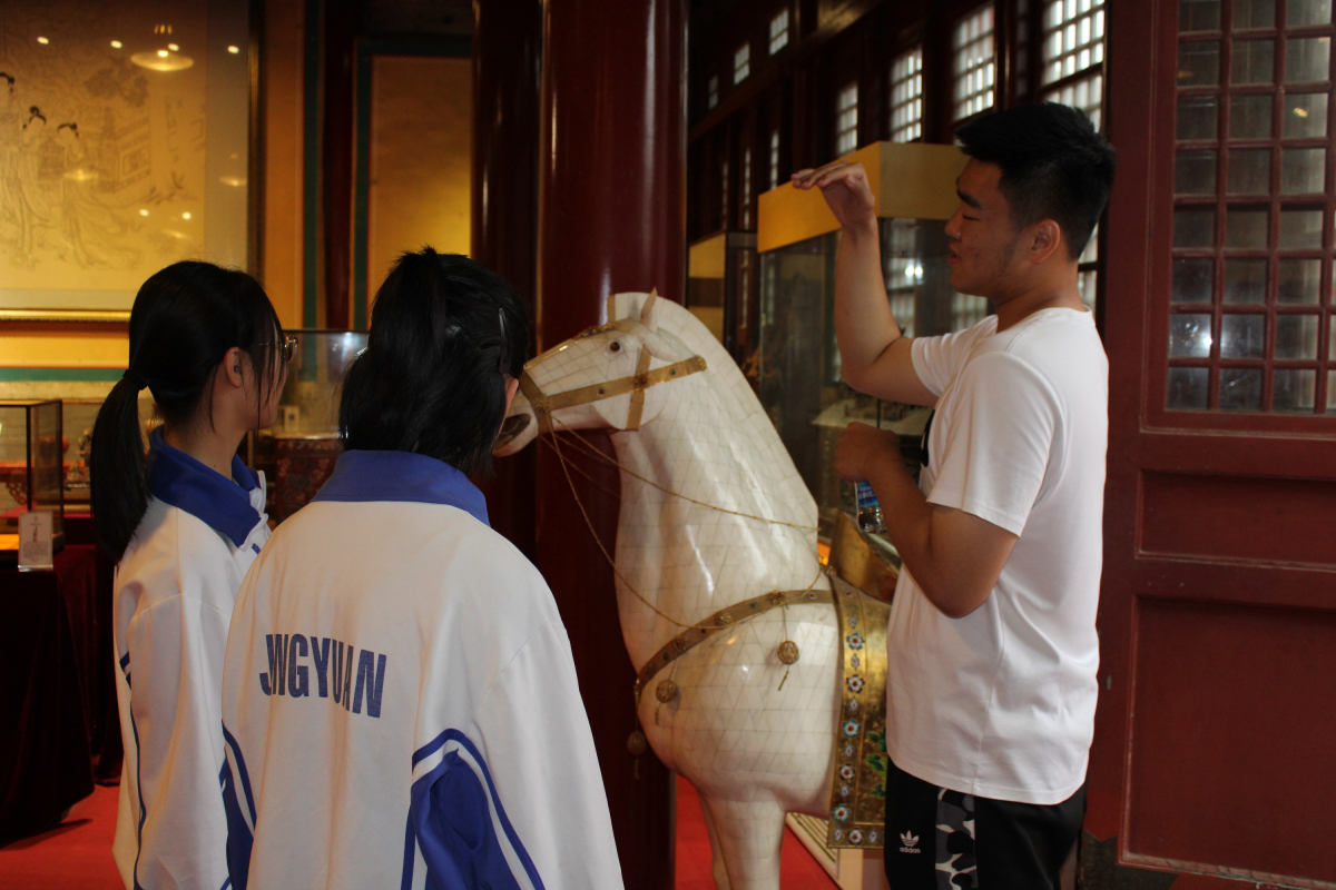 在“我眼中的燕京八绝博物馆”主题活动中,志愿者们通过讲解服务,为青少年员工详细介绍馆藏展品,讲解八绝文化。燕京八绝,即景泰蓝、玉雕、牙雕、雕漆、金漆镶嵌、花丝镶嵌、宫毯、京绣这八大工艺门类,在清代均开创了中华传统工艺新高峰。志愿者们的讲解流畅自然、耐人寻味,赢得了阵阵掌声。