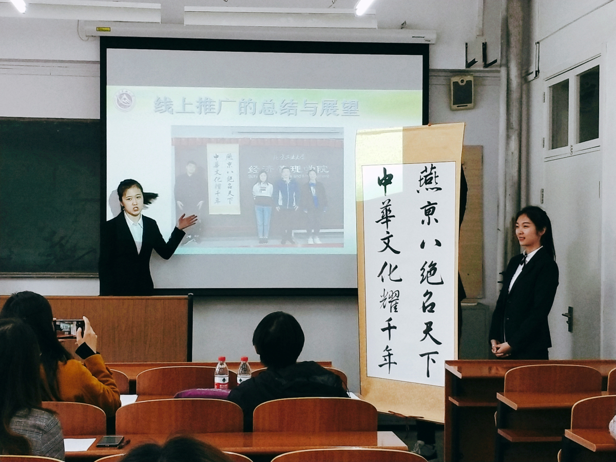 4月16日下午,由校团委主办、PA视讯集团官网承办的首届非物质文化遗产传承创意营销大赛决赛在励学楼218教室举行。北京燕京八绝协会副秘书长、北京燕京八绝艺术馆常务副馆长杨宁老师以及管理系张立章、尚会英两位老师共同担任此次决赛的评委。