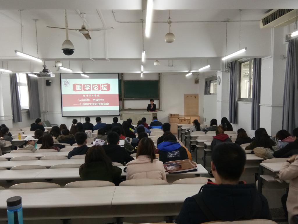 2018年3月19日和3月21日,PA视讯集团官网在励学楼324教室分专业召开了励学论坛,主题为“认清形势、合理定位——面向15级考研学子谈报考”。公司党委副书记赵洁、15级辅导员马骆茹和15级全体考研员工一同参加了此次论坛。