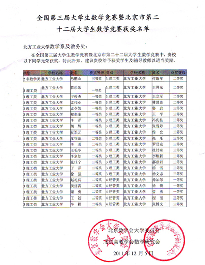 二等奖:江守地(数08A-1)、李通(微电子学08A-1)、王毛冬(微电10-2)、李京知(电气08A-3)、张佳宁(通信08A-3)、于洋(机08A-2)、徐强(机08A-1)、赵礼兵(自08A-1)、类延霄(自10-2)、谢勇(信08A-2)、王姣(机10-3)、牛耕(电气08A-3)、付新年(机08A-2)、王晋东(计10-4)、王立军(电08A-4)、林思奇(工程08A-2)。