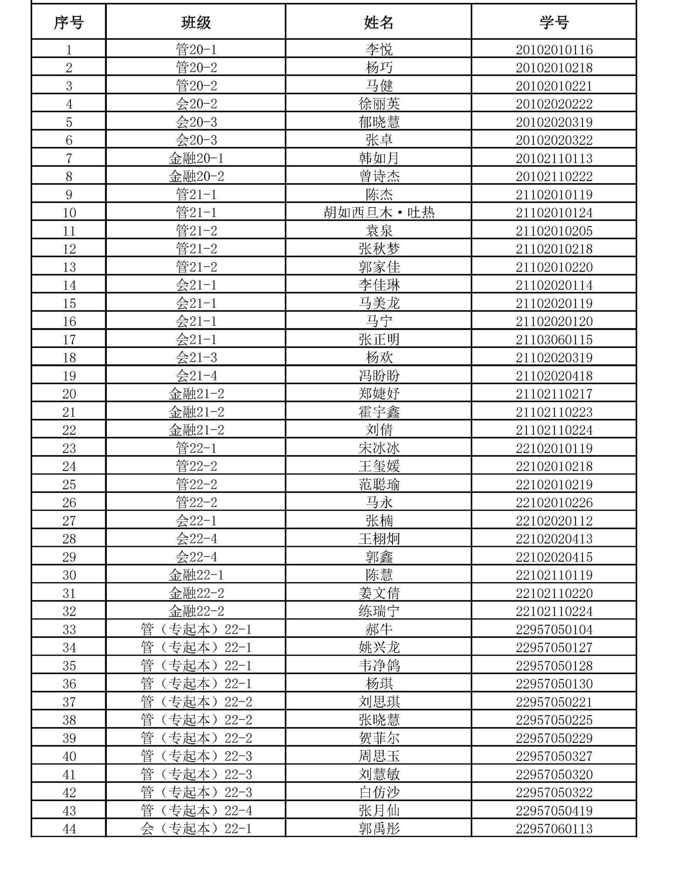 2023年国家励志奖学金名单