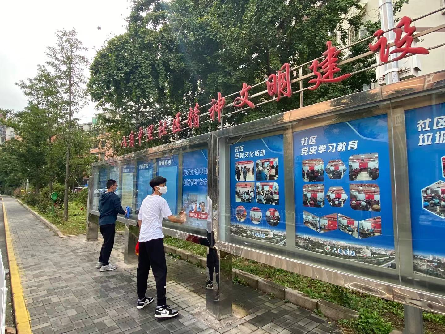 此次共建活动的主题是“环境治理志愿服务”。支部党员和积极分子分工明确、相互配合,有的负责擦洗社区居民楼各个单元的大门,有的负责擦洗社区居民楼里的灭火器,有的负责擦洗社区宣传栏的展板。随后,支部党员和积极分子与社区工作人员进行了交流,对社区治理在城市建设中的重要性有了进一步的认识。