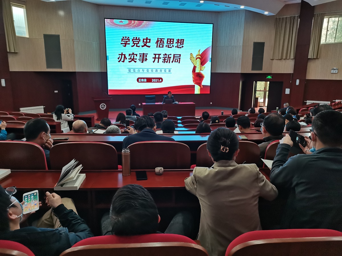 按照公司党史学习教育安排部署,4月25日下午,经济管理公司党委书记王伟宾结合个人学习心得,以“学党史 悟思想 办实事 开新局”为题,在文化会堂为全院教师上了一堂意义深刻的党课。