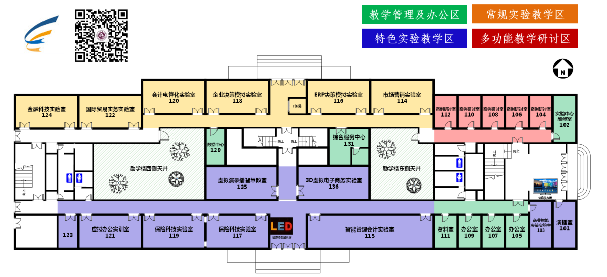 实验中心软硬件条件现代化程度高,设备设施较为完备,各类实验室占地面积1320m2,固定资产总值1800余万元。目前建有案例研讨室、虚拟演录播智慧教室、3D虚拟电子商务实训室、智能管理会计实验室、虚拟办公实训室、保险科技实验室、商业智能决策实验室等20个实验室,教育网和联通专线双千兆宽带网络接入,10余台服务器,300余台电脑。同时,已采购经管类国内主流软件模拟实训平台,服务于各类经管实验课程、专业竞赛和其他教学科研活动,并每天向员工免费开放。
